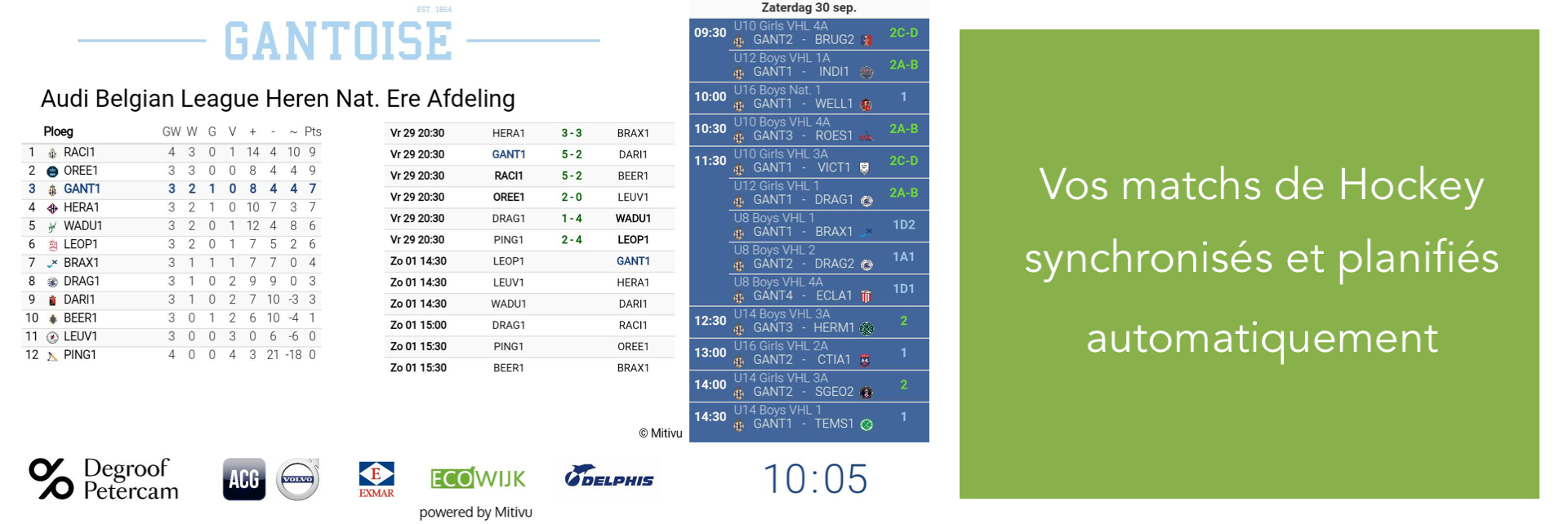 Mitivu vous propose des solution d'affichage dynamique adaptées à votre sport pour club-house de tennis, de hockey, de football, de basket ou de rugby.